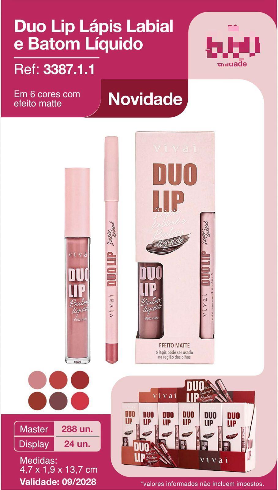 Duo Lip Lápis Labial e Batom Liquido c/24pçs Vivai