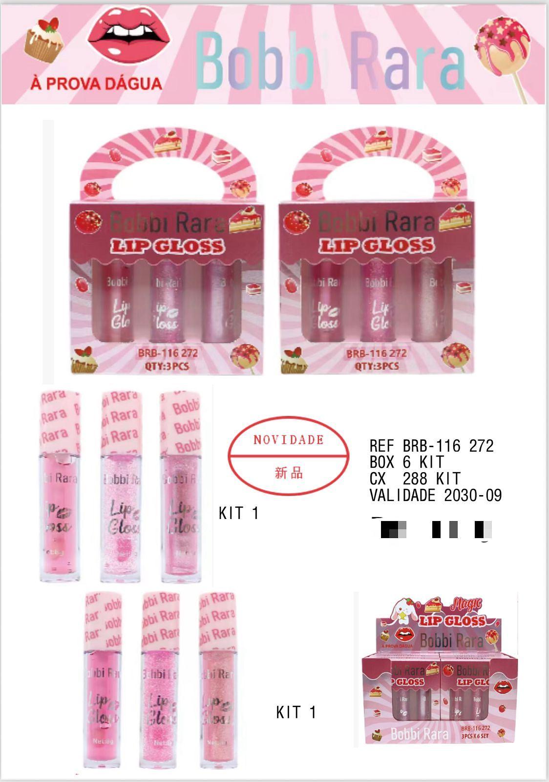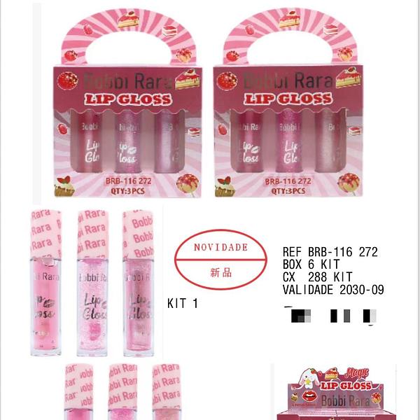 Kit 3 Lip Gloss c/6pçs Bobbi Rara