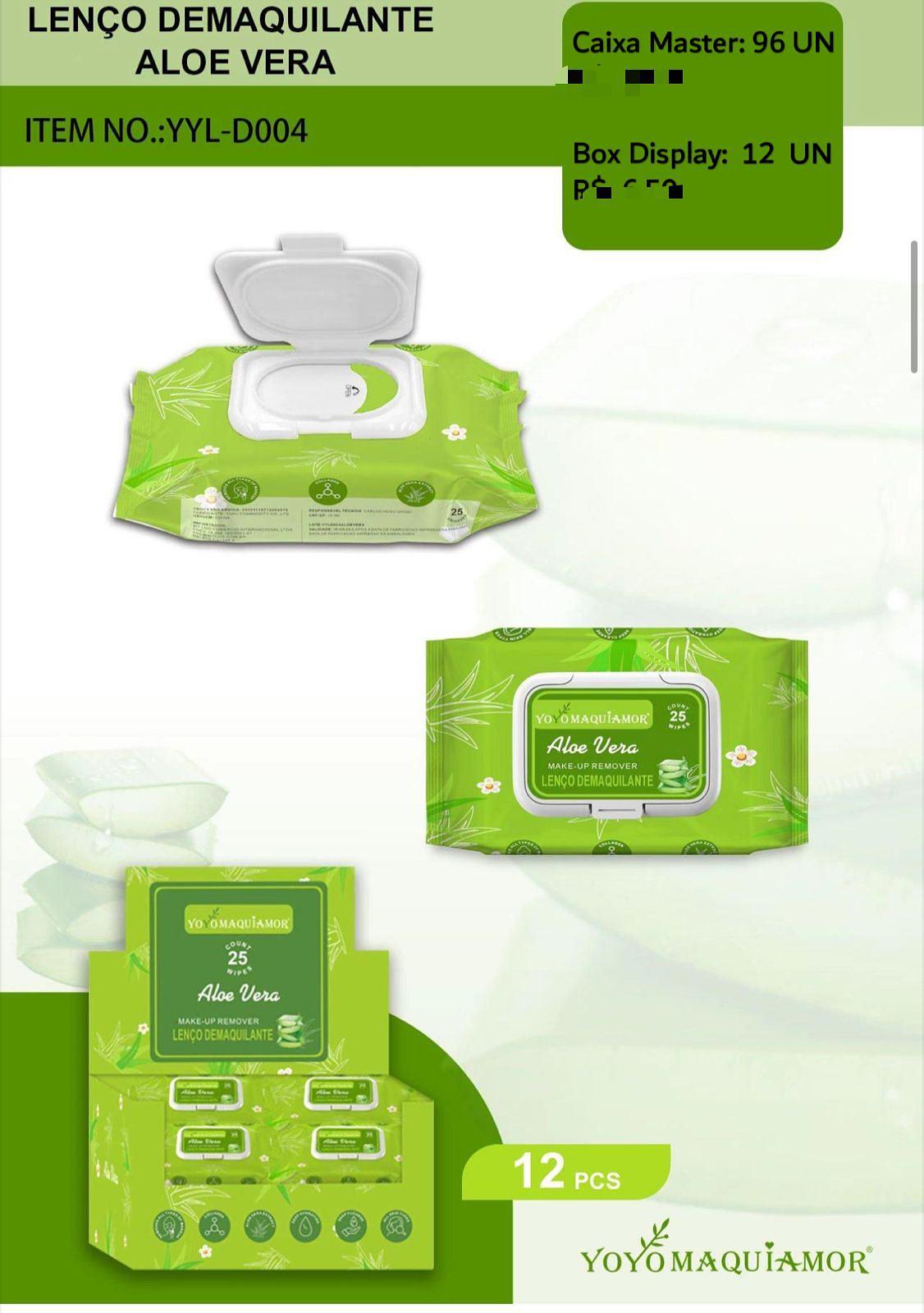 Lenço Demaquilante Aloe Vera c/12pçs Yoyo Maquiagem