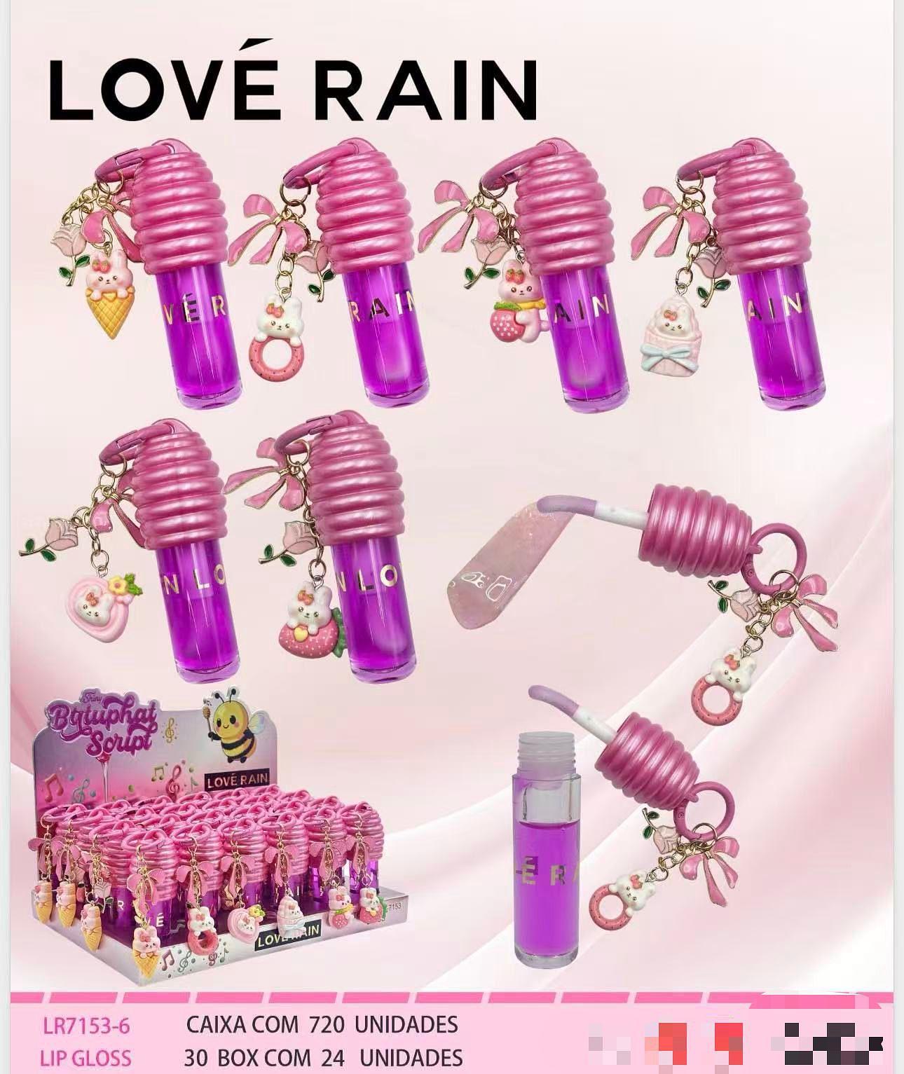 Lip gloss com chaveiro /24pcs Love Rain