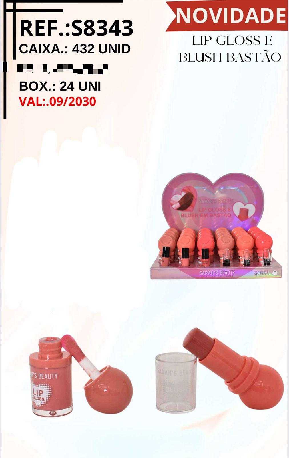 Lip Gloss e Blush em Bastão c/24pçs Sarah´s Beauty