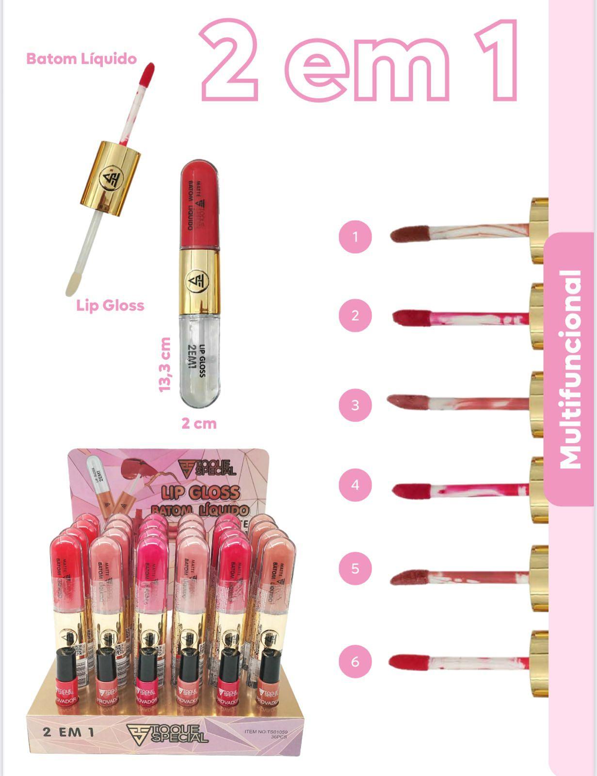 Lip Gloss + Batom Líquido /36pçs Toque Especial