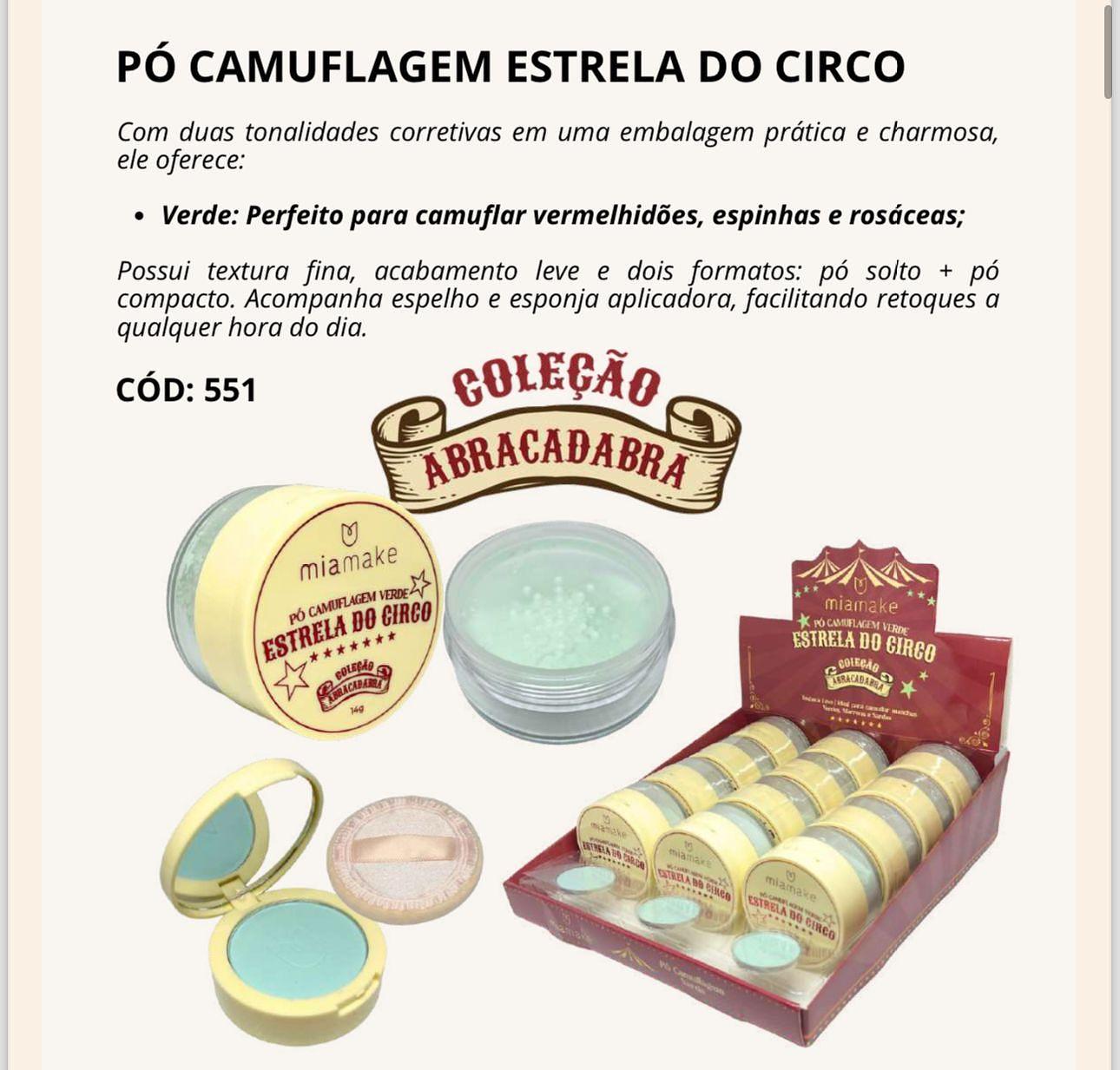 Pó Camuflagem Estrela do Circo (verde) c/12pçs Mia Make